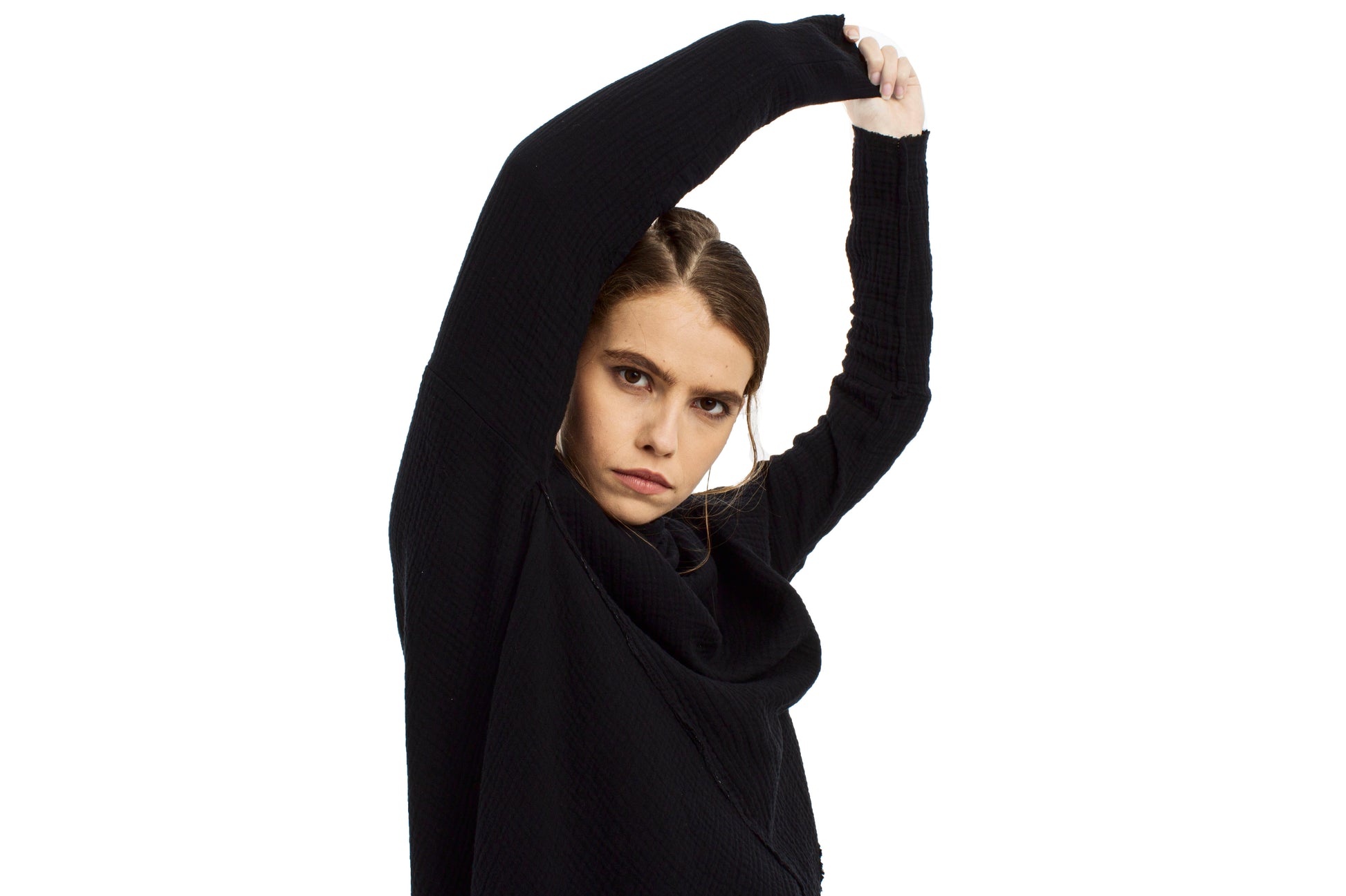 Inspired by black holes that are born from spacetime deformation, the soft embrace of this top is something you can’t escape. Made from soft double gauze cotton its feel on the skin is addictive.