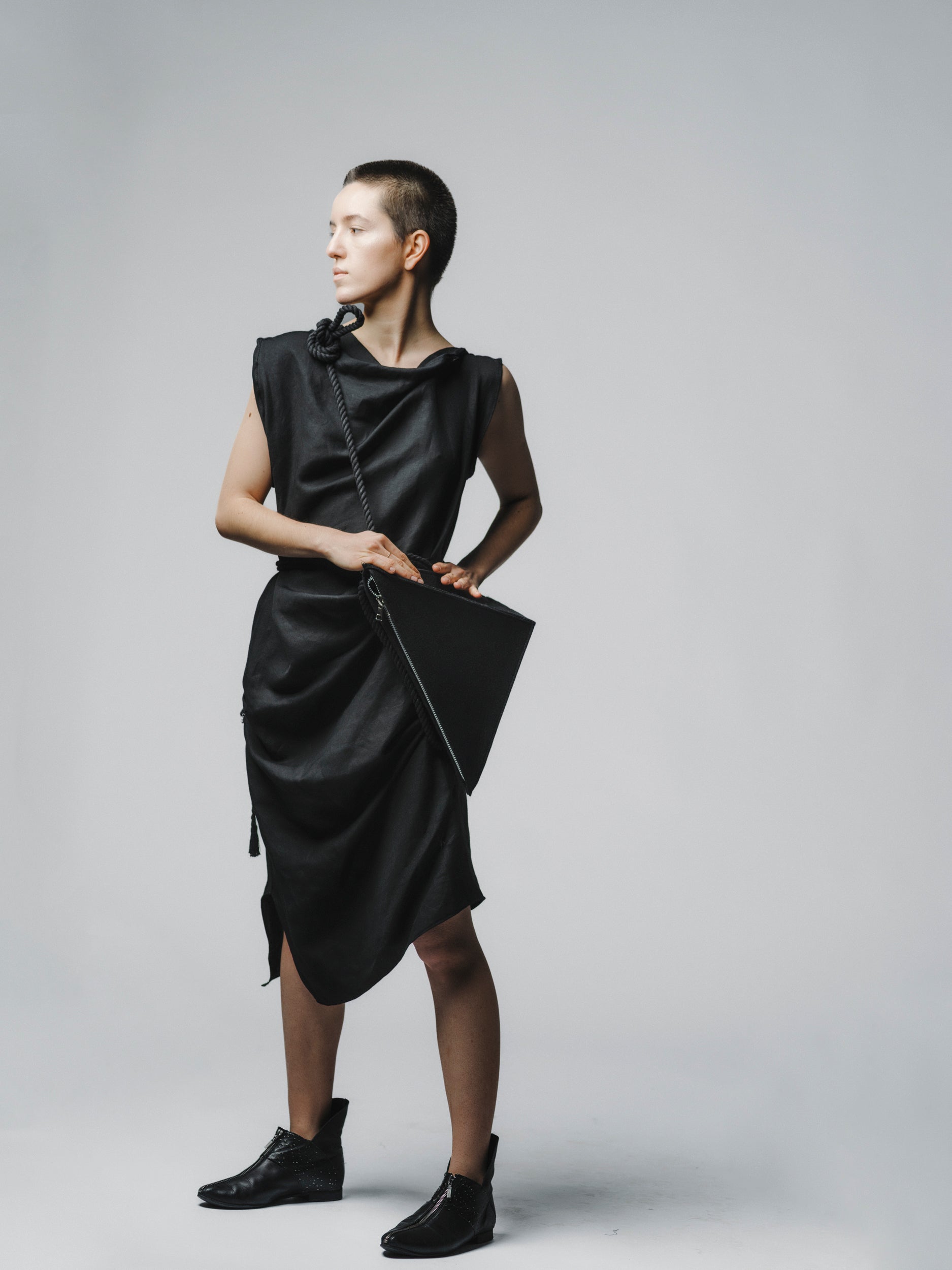 A statement piece for you to style in multiple ways. Our philosophy is to create sustainable items that will last a lifetime in your wardrobe through the fabrics chosen and the various ways of transformation and personalization of each garment.