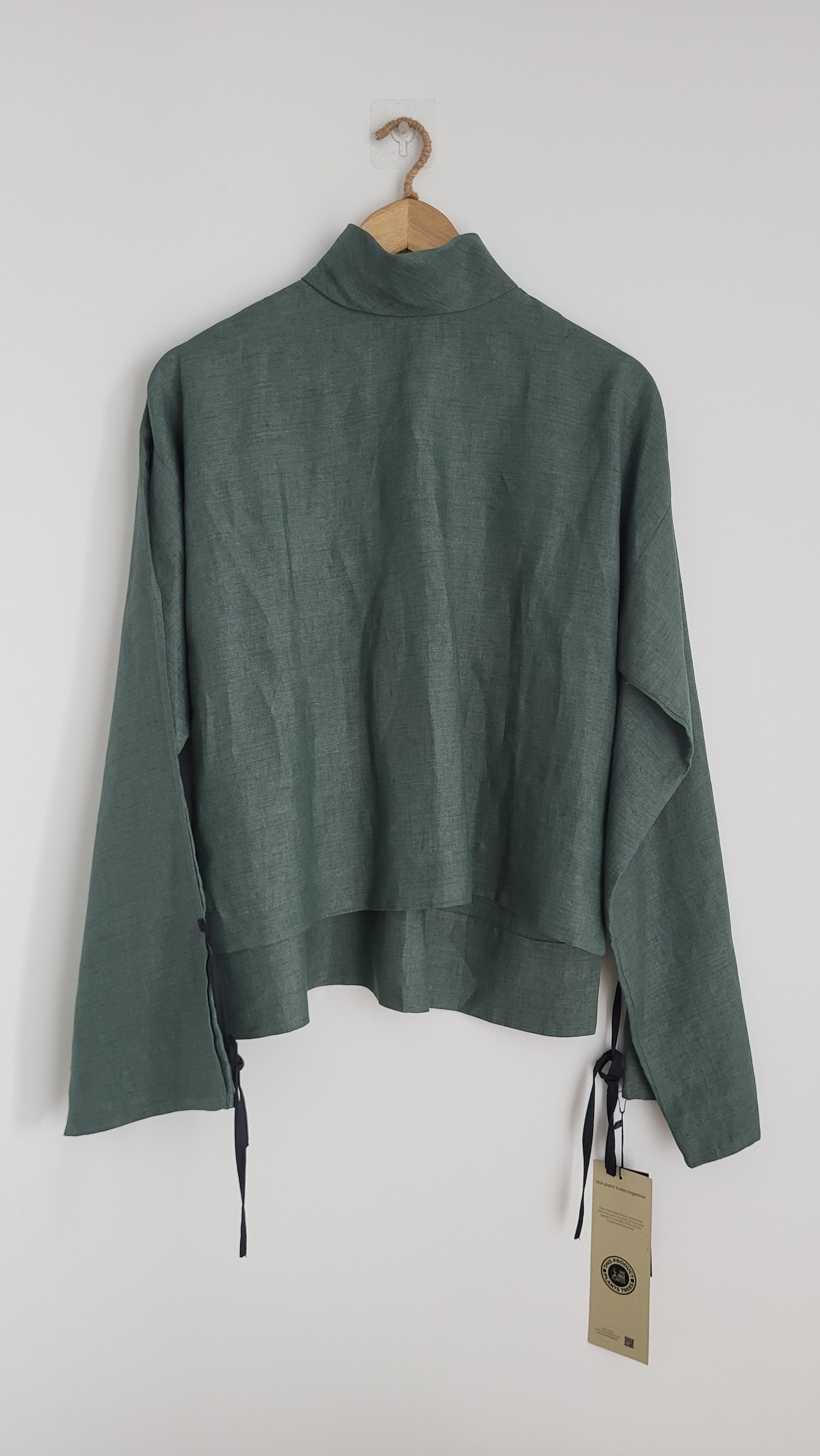 A statement piece for you to style in multiple ways. Our philosophy is to create sustainable items that will last a lifetime in your wardrobe through the fabrics chosen and the various ways of transformation and personalization of each garment.